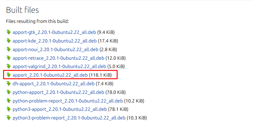Next, download the version right before the patched version amd64 build of apport 2.20.1-0ubuntu2.22 : PPA for Ubuntu Security Proposed : “Ubuntu Security Proposed” team: