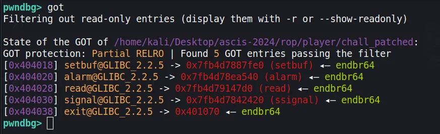 Successfully copied 243kB to /home/kali/Desktop/ascis-2024/rop/player/.