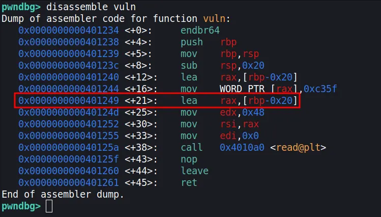 vuln_read = exe.symbols['vuln'] + 21