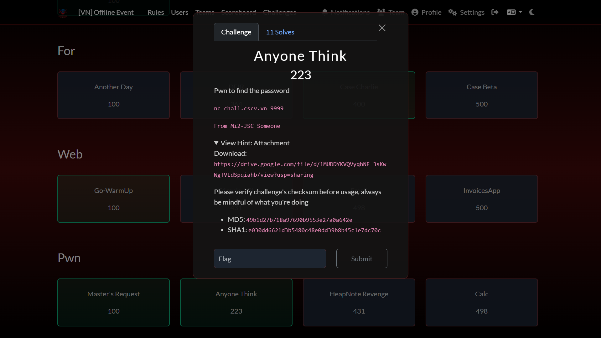 Tiếp tục với bài pwn thứ 2, 11 solves. Bài này mình có ý tưởng rất đơn giản, không biết có phải là unintended solution hay ko :v