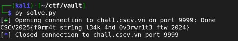 }Để ý ở đây ta gặp format string bug printf(entries[index].secret.