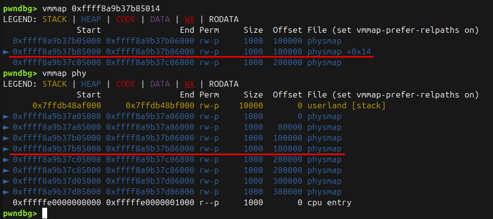 ► 0xffff8a98c0099000 0xffff8a98c009b000 r-xp 2000 99000 physmap