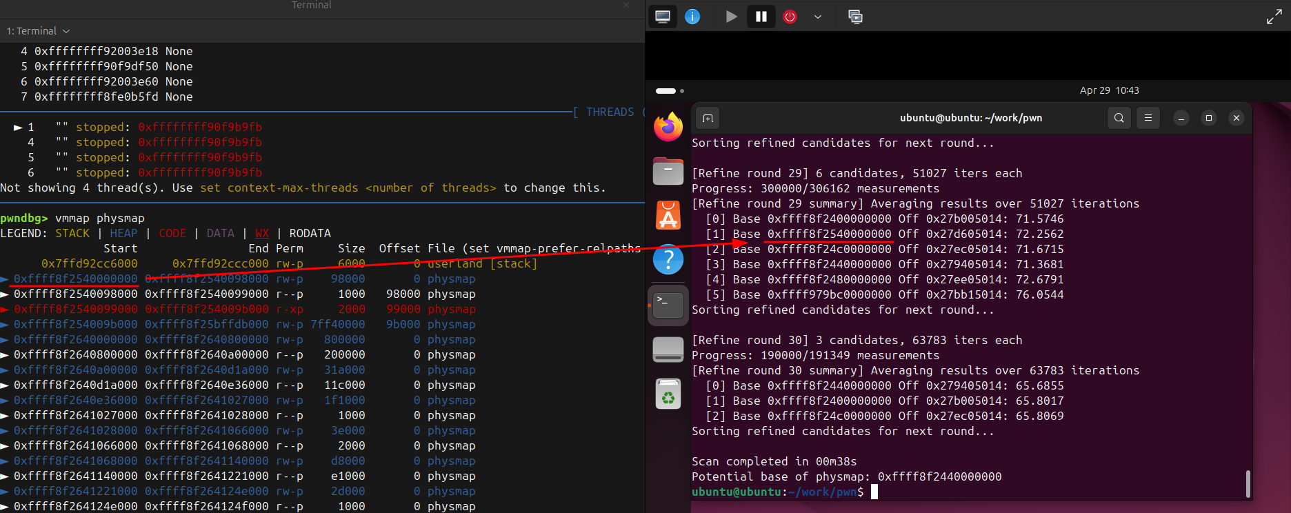 Mình ko thực sự đảm bảo luôn cho ra base đúng, nhưng mình test nhiều lần với Ubuntu 24.04 trên QEMU, VMware, Virtualbox và bare metal đều đc. Với bare metal làm sao để mình xác nhận physmap base là đúng? Mình viết một kernel module để in physmap base ra dmesg.