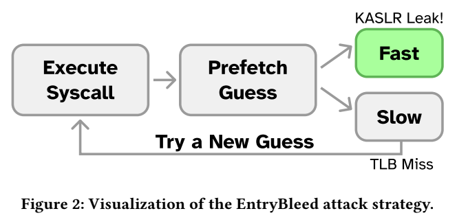 entry_SYSCALL_64) vào TLB. DùCR3được switch sang kernel page table, epilogue code của hàm vẫn chạy khiCR3còn là user page table, nên vẫn ở trong TLB.Prefetch tất cả các địa chỉ base khả thi của kernel trong phạm vi bắt đầu từ