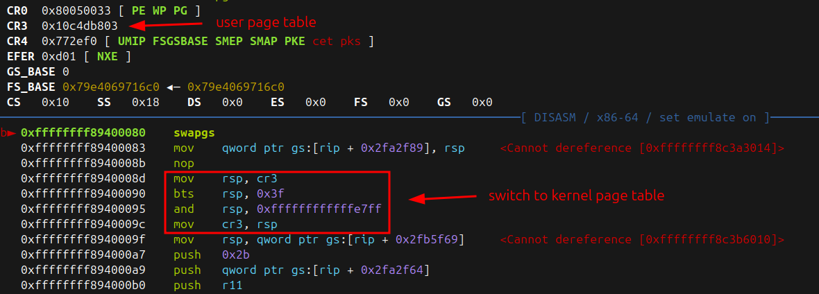 entry_SYSCALL_64đang cached trong TLB, trừ đi offset tính được kernel base.
