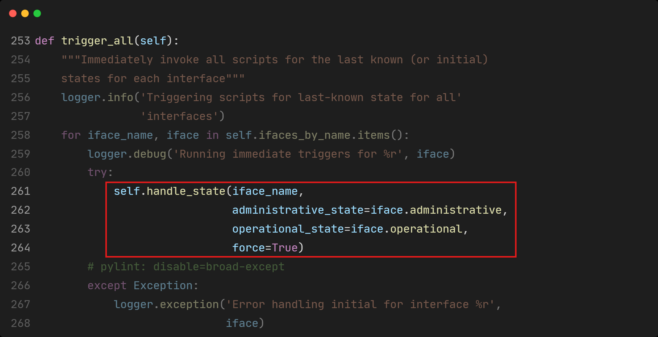 Continuing to trace back, we see that there are 2 calls to handle_state(). Let’s inspect the first call in trigger_all().
