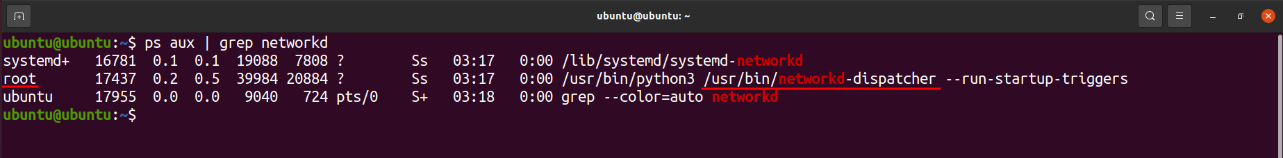└─778 /usr/bin/python3 /usr/bin/networkd-dispatcher --run-startup-triggersubuntu@ubuntu:~$ dpkg -l | grep networkd-dispatcher