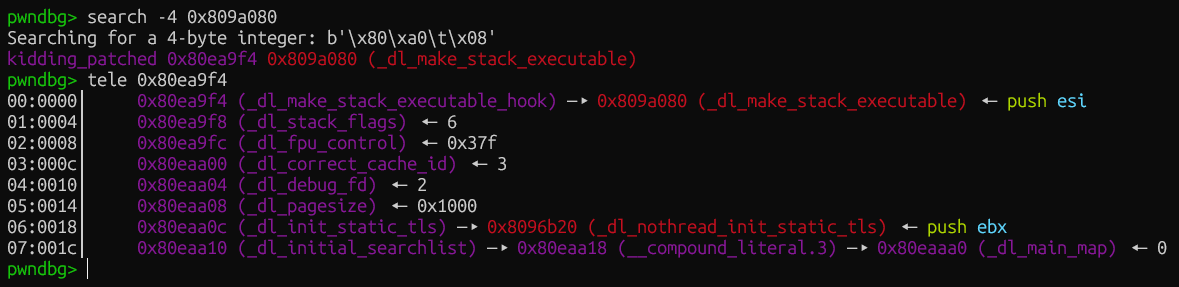 Địa chỉ của _dl_make_stack_executable đc ghi vào _dl_make_stack_executable_hook: