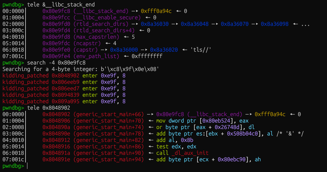 # 0x8048902 (generic_start_main+66) —▸ 0x80e9fc8 (__libc_stack_end)